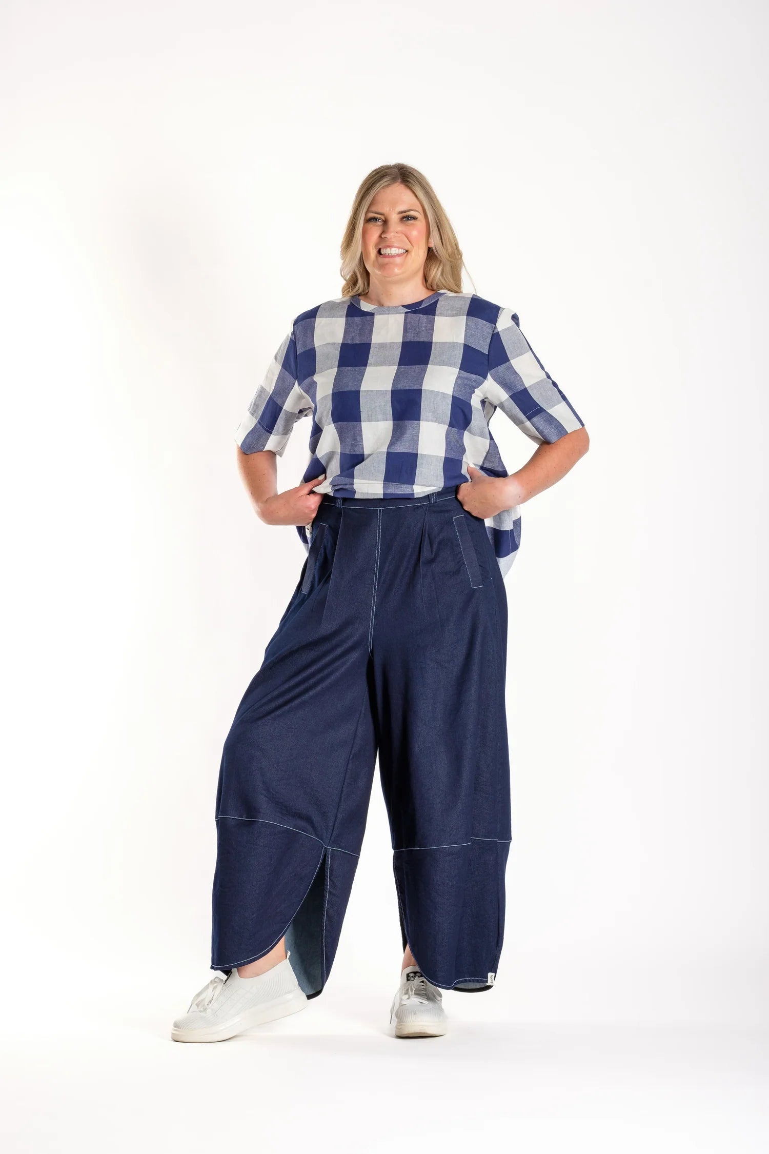 Artful, edgy, and unapologetically different — the Apartmento Pants are all about sculptural movement and standout shape. Featuring a unique tulip-style hem with curved overlapping panels, they offer soft volume without bulk. Front darts and a flat waistband provide a clean look through the waist, while the elasticated back ensures comfort and ease. Finished with front welt pockets and back patch pockets for a utilitarian twist.