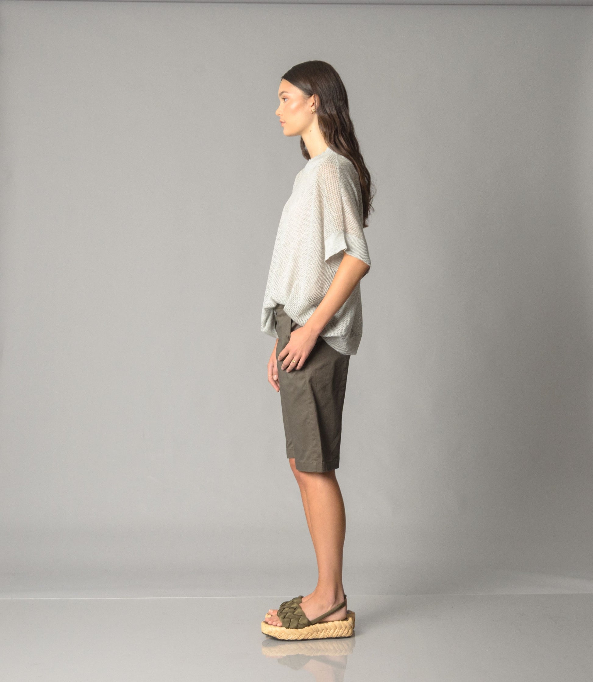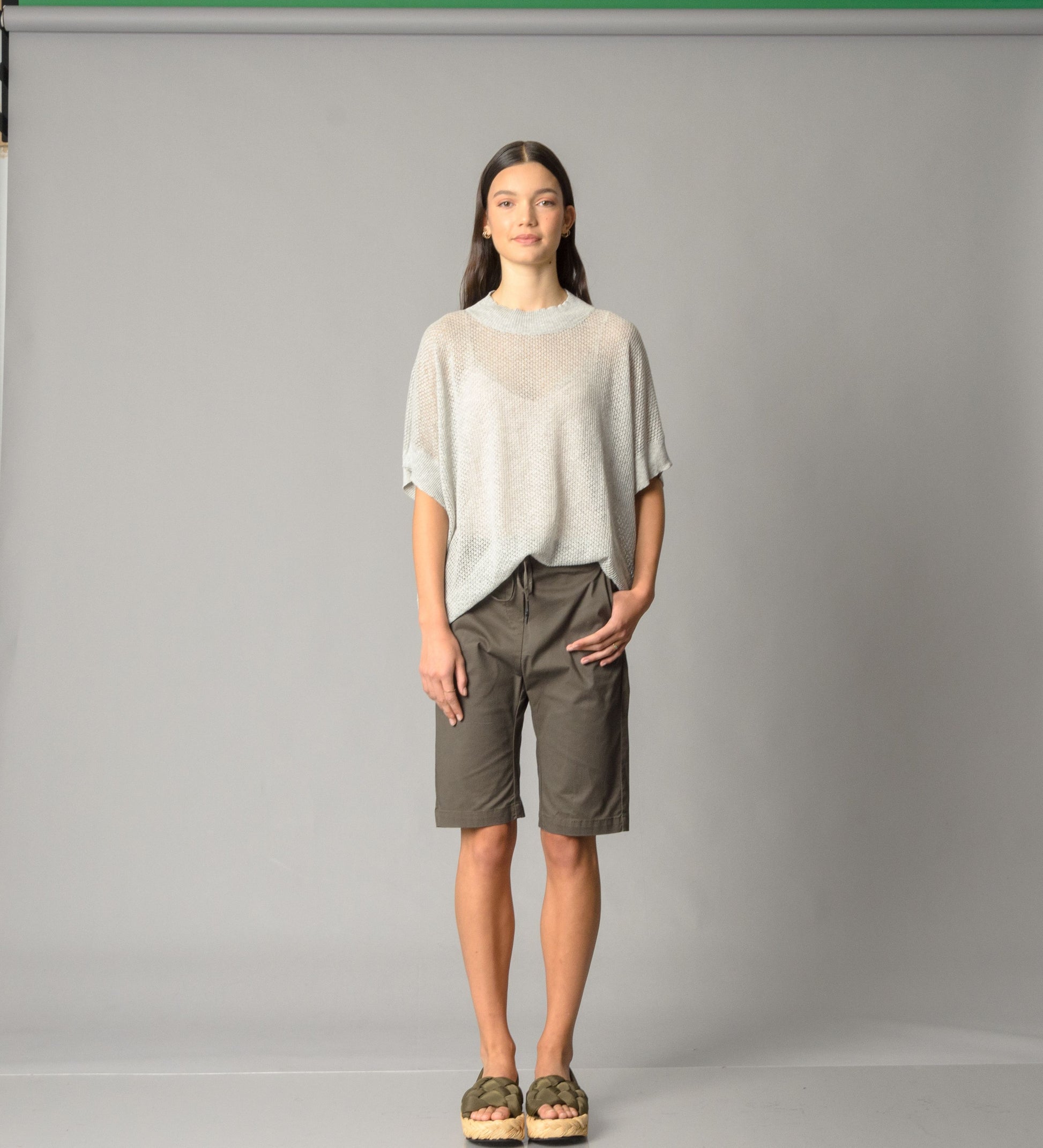 This fine knit with cuff sleeves and hem is perfect layered over a cami for a warm day and adds a pop of colour to your outfit!