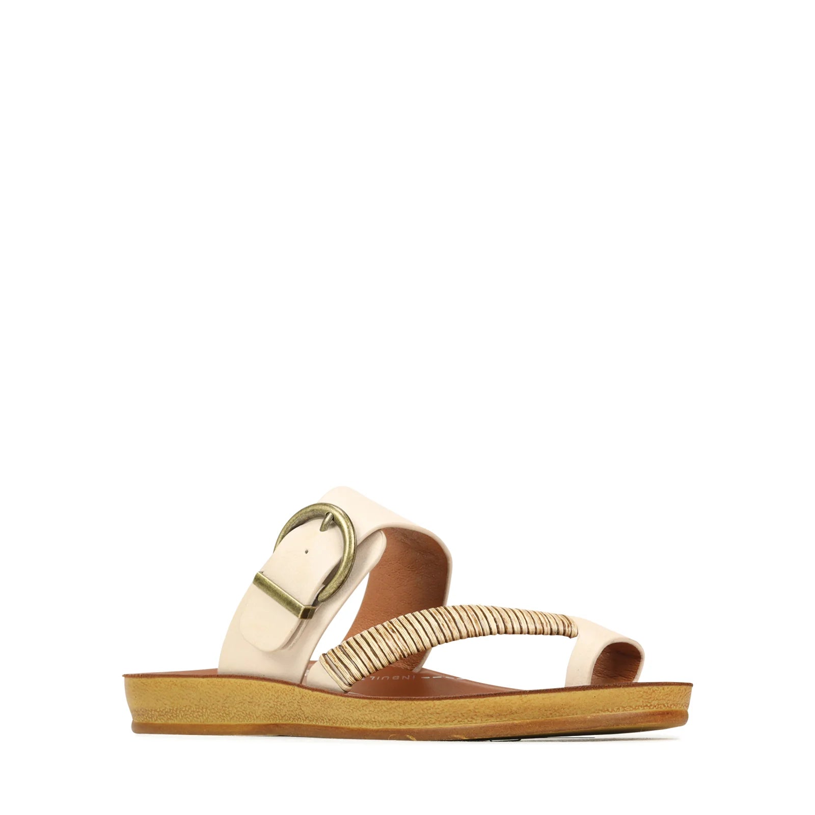 Los Cabos captures the spirit of fun in the sun with their Bria sandal. The ease of a slip-on is given a touch of natural beauty with our woven bamboo wrap gracing the toe strap, whilst the antique round buckle on the back strap adds a treasure box accent. Ideal for resort escapes, beach walks or just a shoe to slip on when you need to rush out the house.