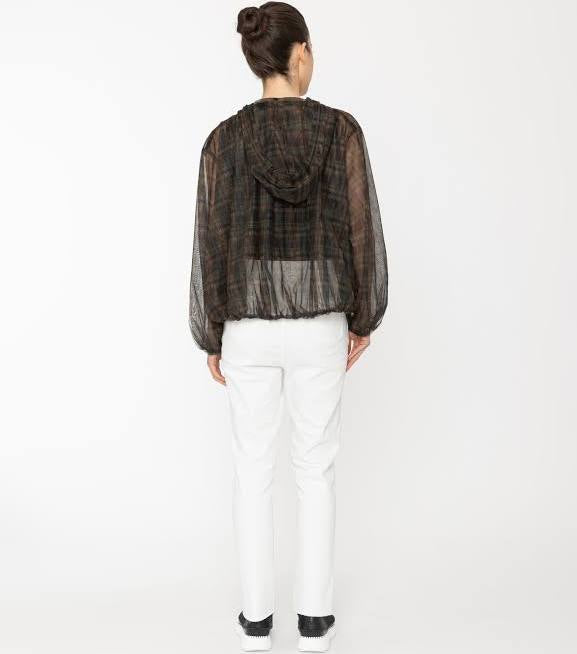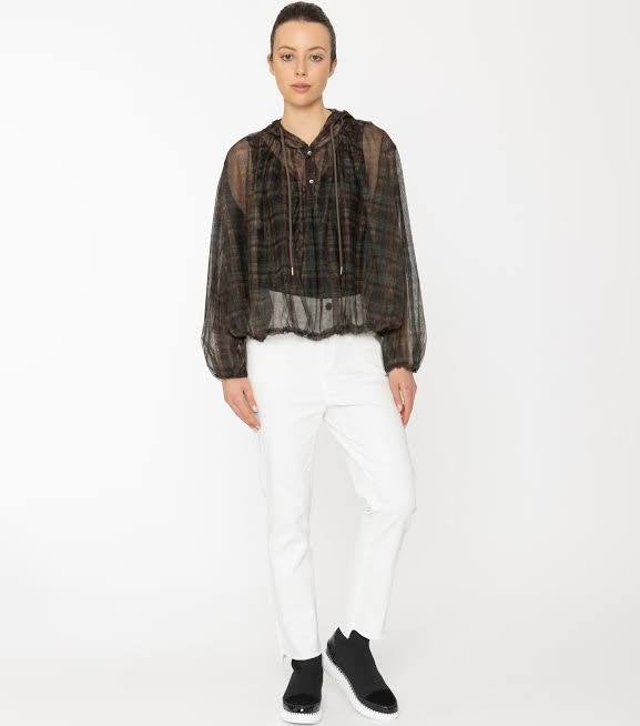 The Chelsea top is a really versatile piece in a lightweight, semi sheer check fabric.