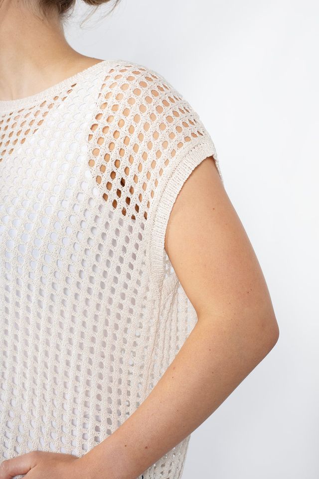 The Chelsea Vest features an open weave and a relaxed silhouette, making it the perfect throw on for warm summer days. Woven with subtle gold lurex for just a hint of shimmer, it’s an easy one size style that layers beautifully over everything from swimwear to a simple tank and jeans.