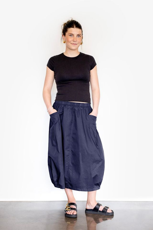 The perfect travel/hoilday/everyday skirt features an elasticated waist, front pockets and elasticated detail at the hem.