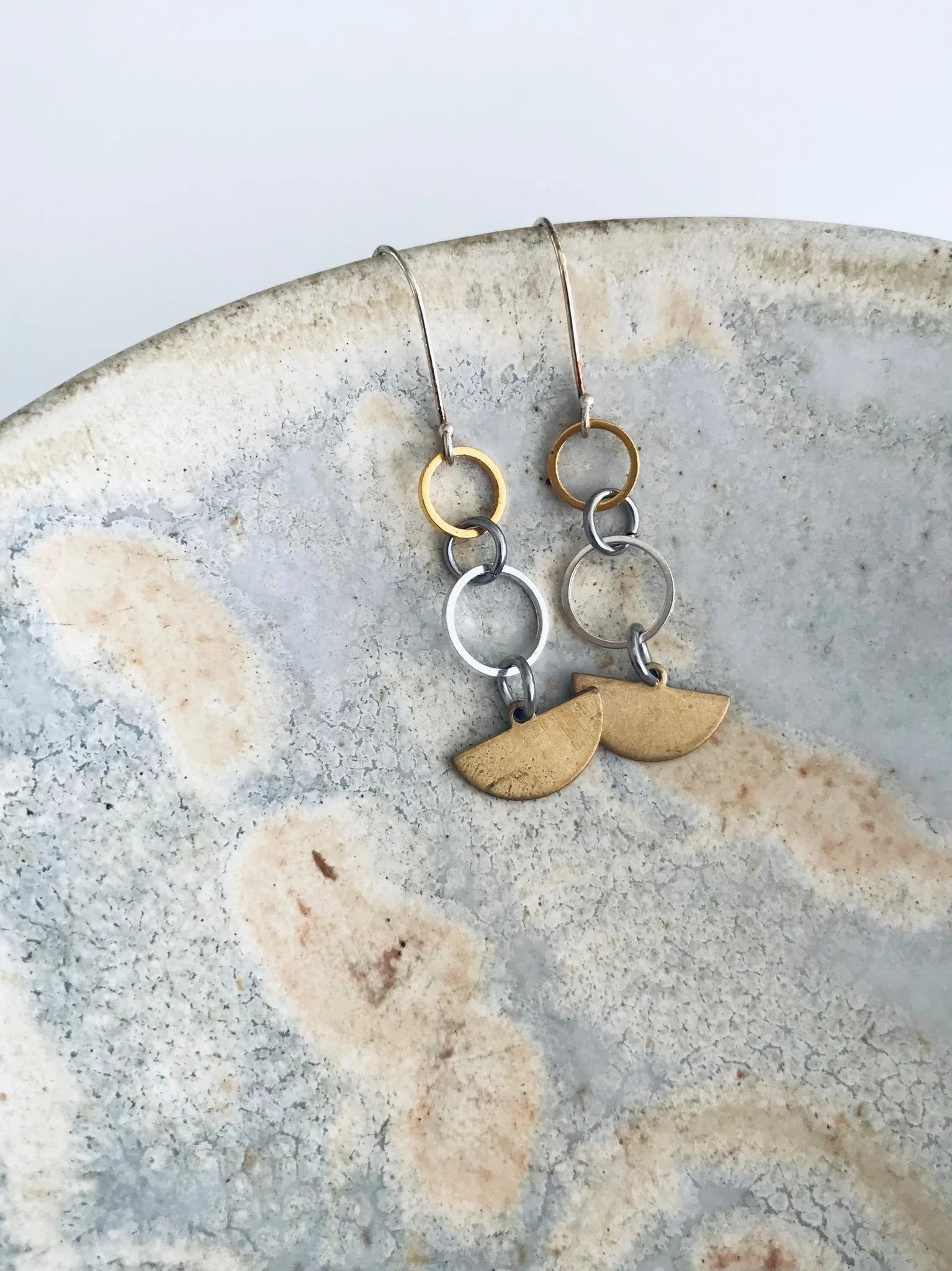 The double circle drop earrings have a mix of brass and silver so they match whatever you are wearing!