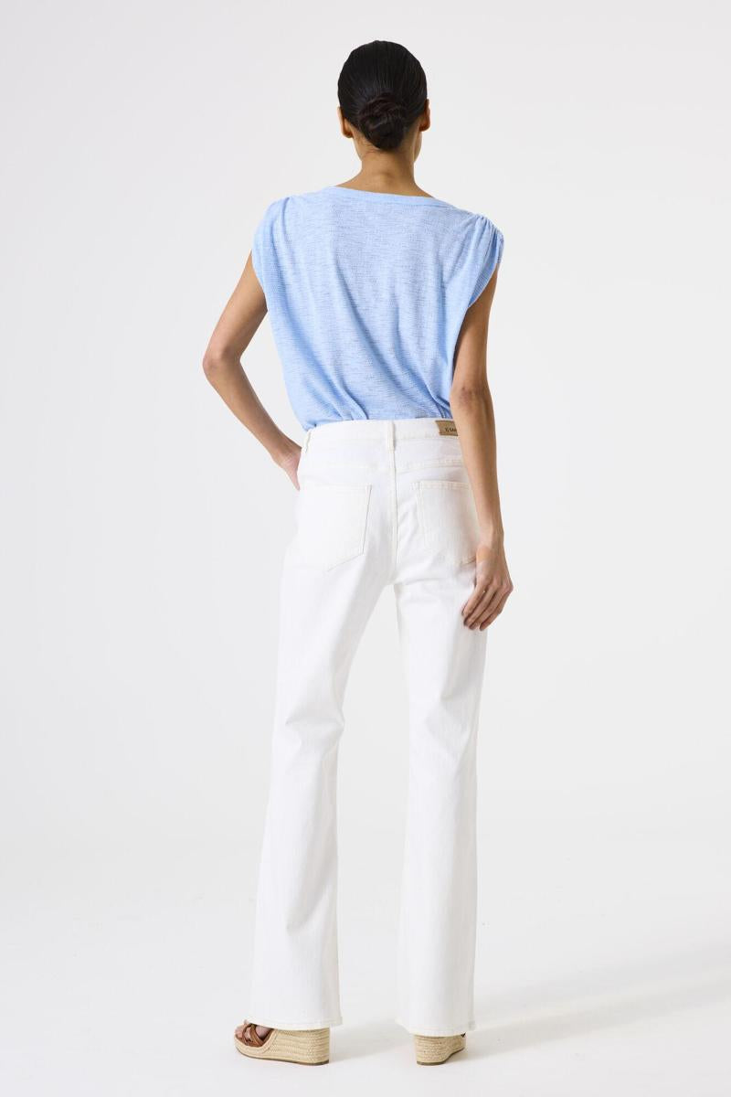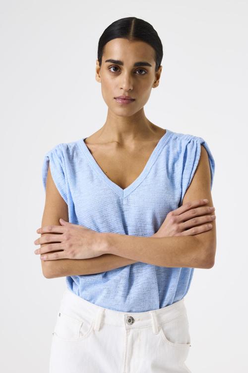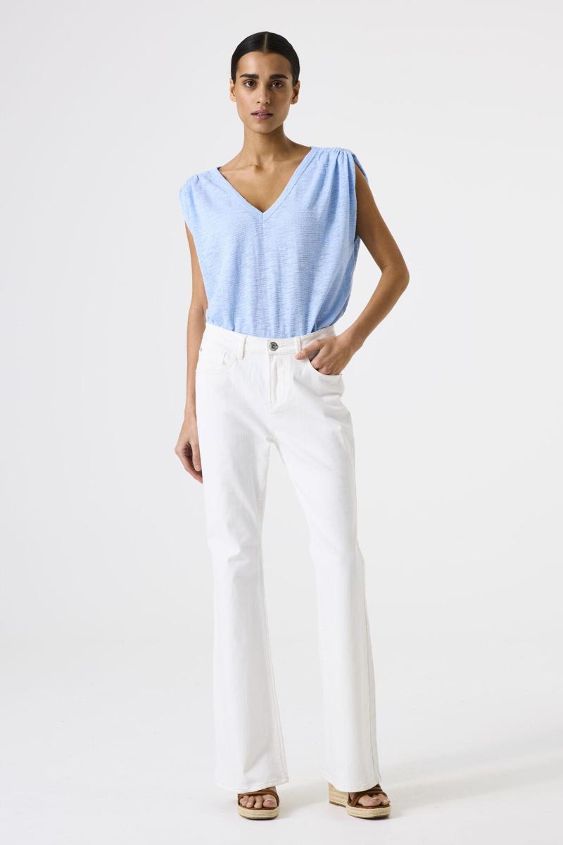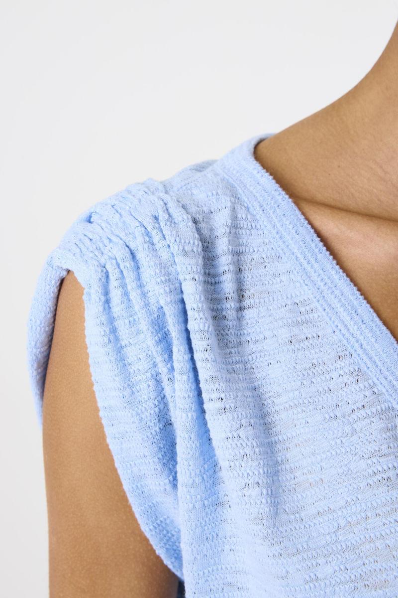 The Blue Wave knit is an easy wear with drawstring shoulder detail. An easy piece to add your wardrobe. This top has a V-neckline and a regular fit.
