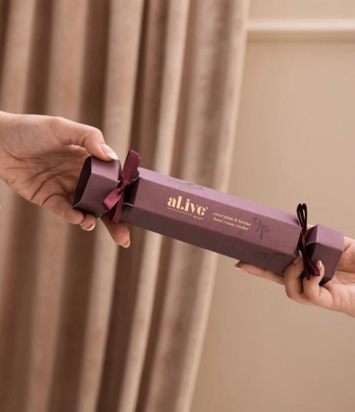 Our premium Hand Cream in festive cracker presentation that doubles as a tree decoration. Features exclusive Sweet Plum & Berries scent with native Davidson Plum and strawberry extracts - the perfect stocking stuffer that's beautifully functional.