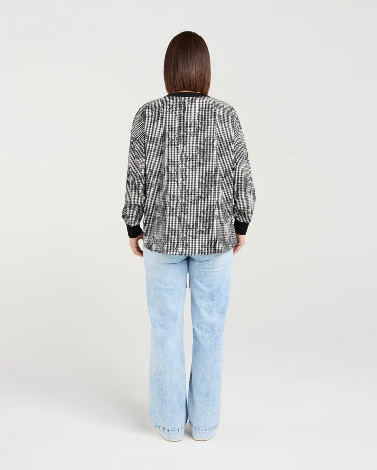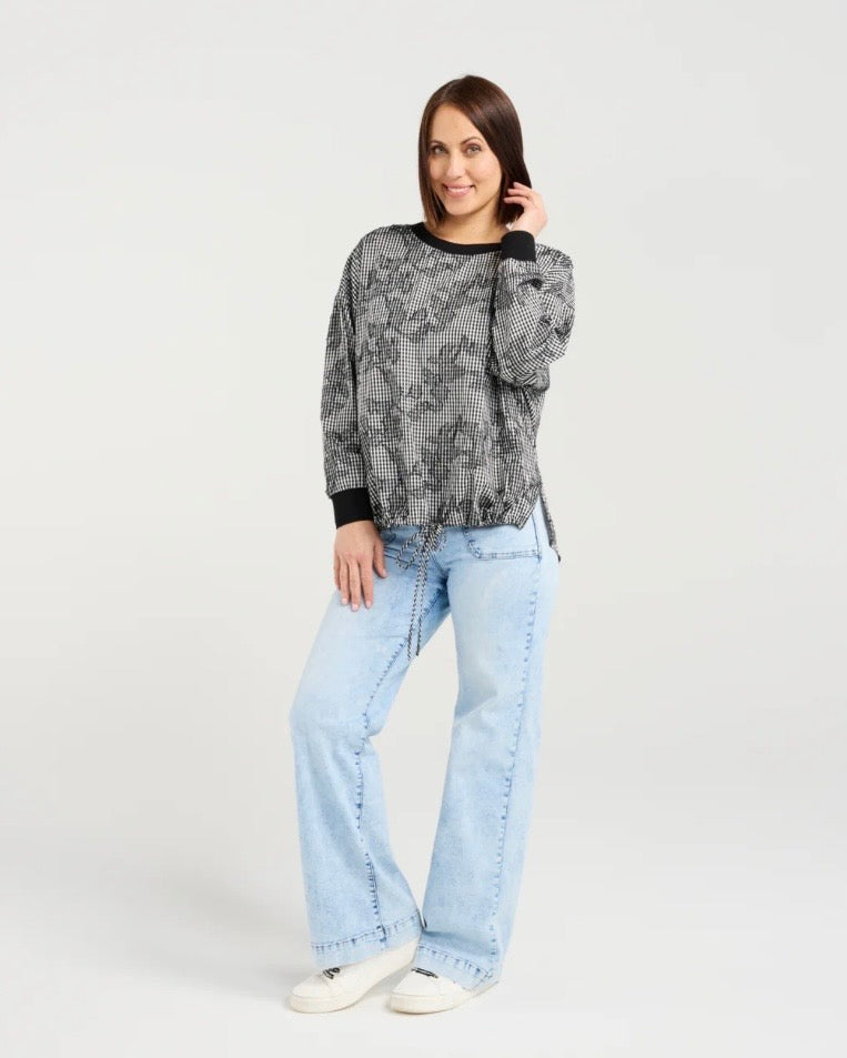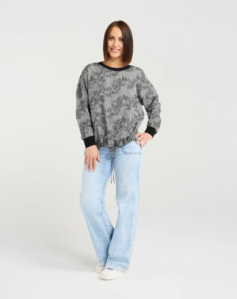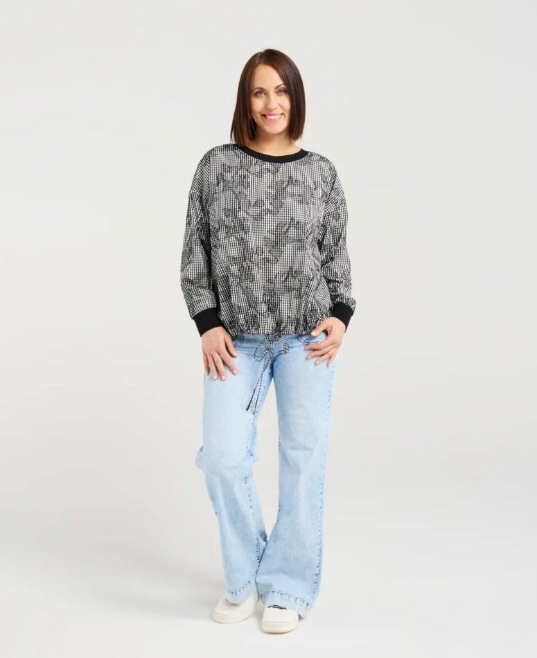 The Isla is a long-sleeve top featuring elasticated arm cuffs, a slight side split, and a front hem drawstring for a relaxed, adjustable fit. Crafted in modern check fabric, it combines contemporary style with effortless comfort, perfect for winter layering.