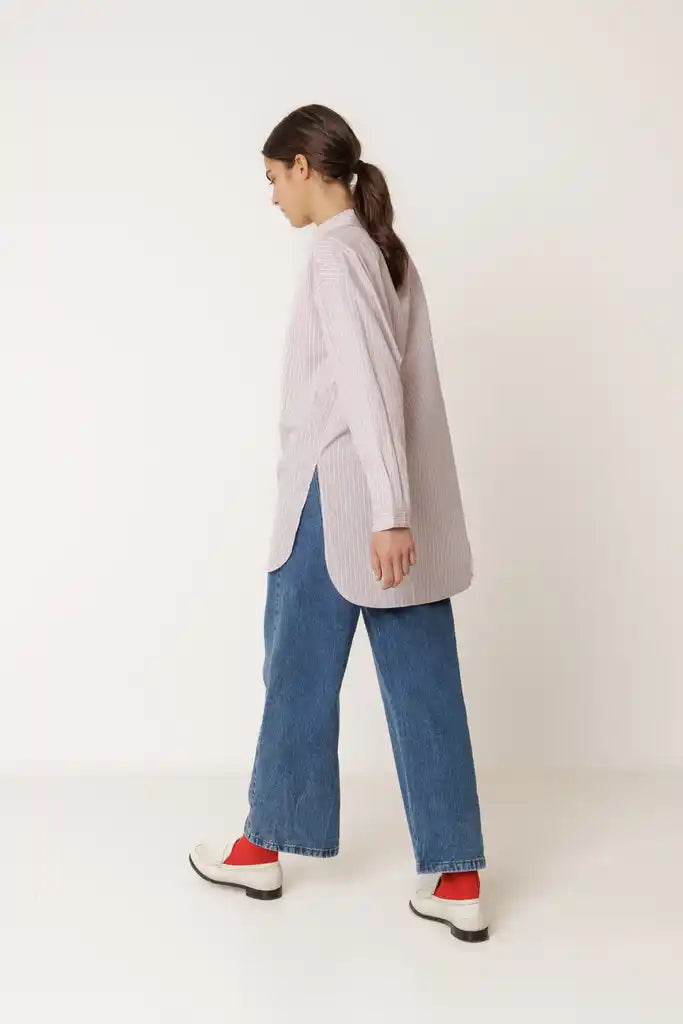 Striped cotton skirt in a longline length, perfect for layering over a skinny pant and adding a vest or jacket to complete the look!