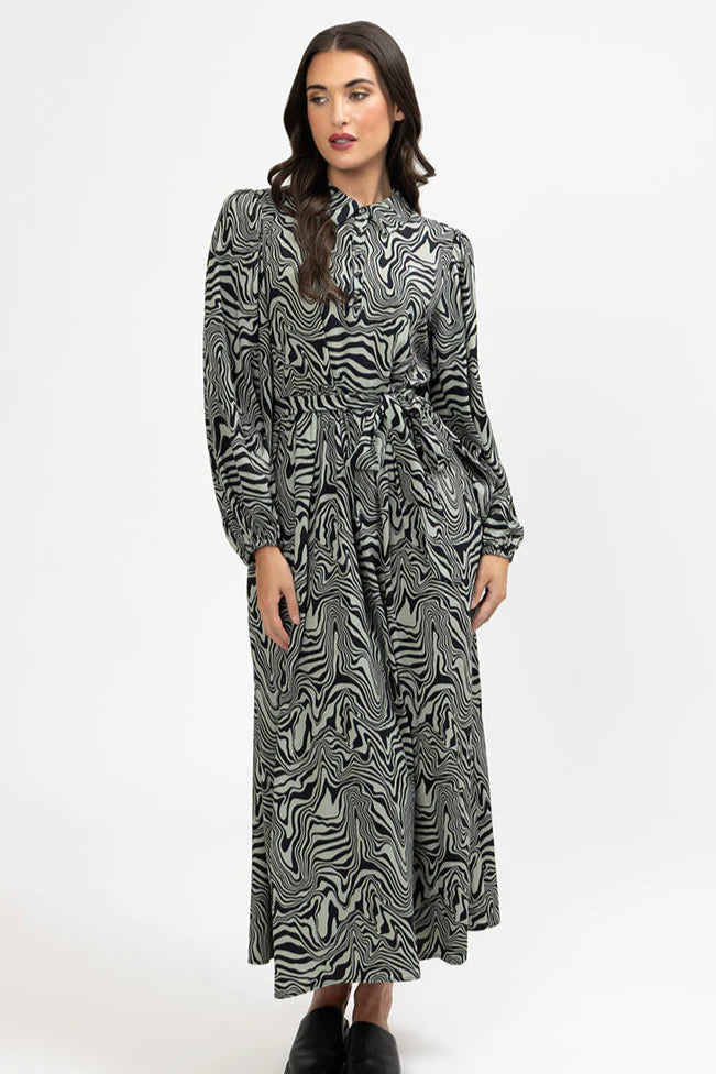 The Muse Dress is a midi length with a long sleeve, perfect for all seasons!