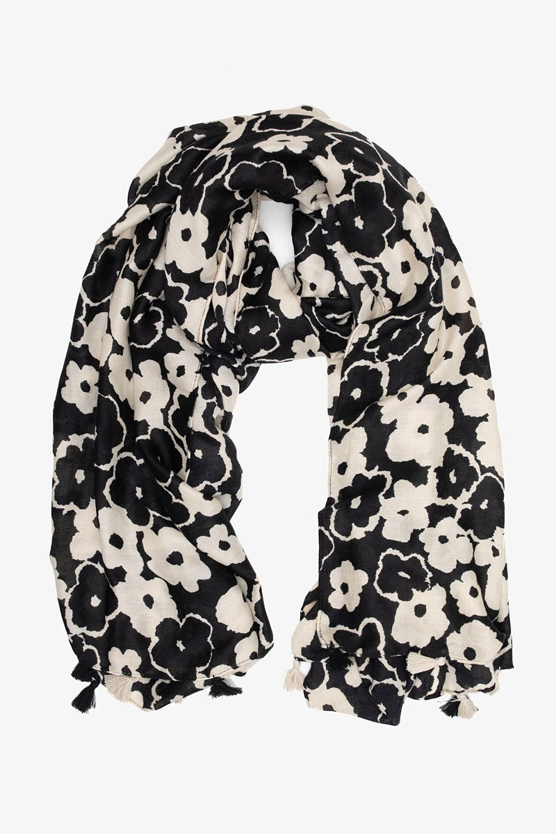 Black & Oat Poppy Print Scarf.