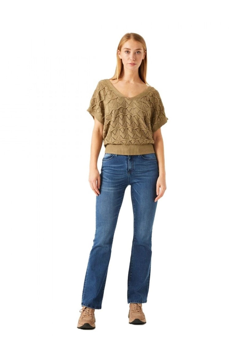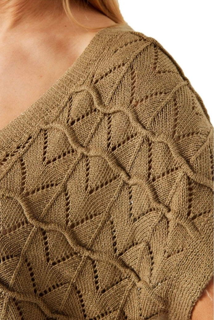 V neck pullover in a textured pattern. It looks great with shorts or jeans!