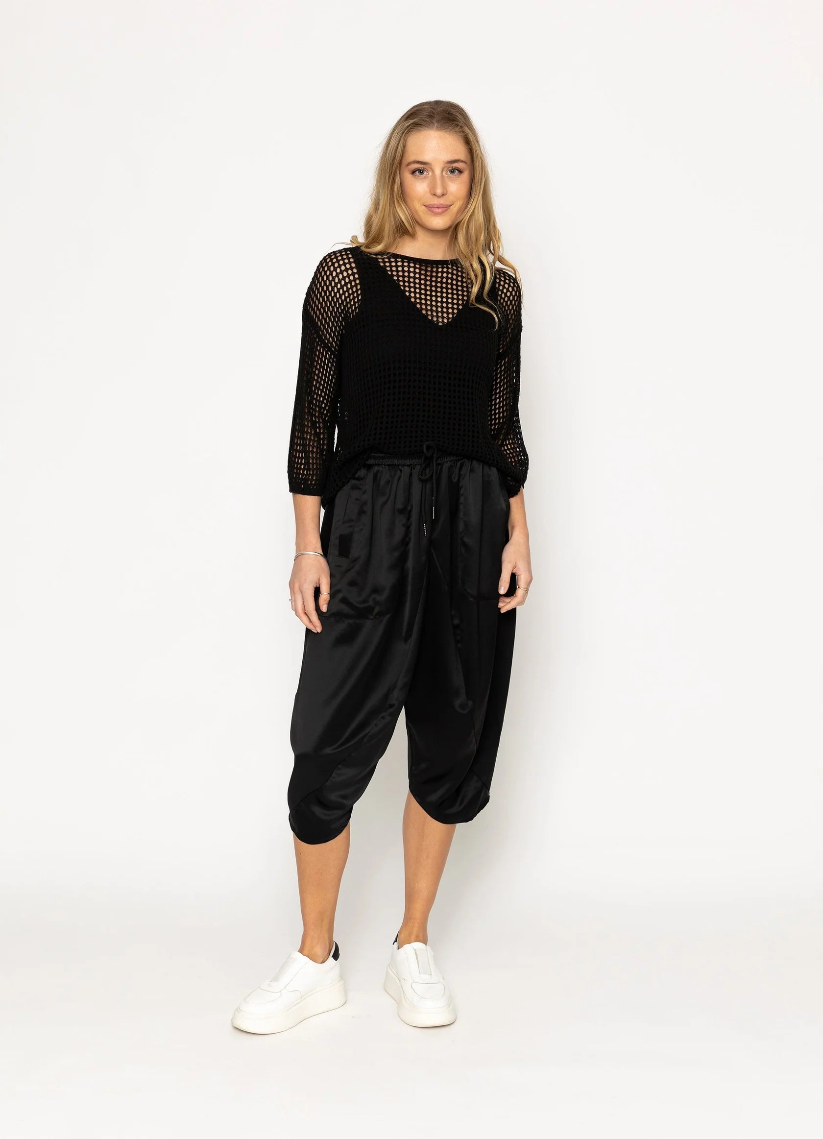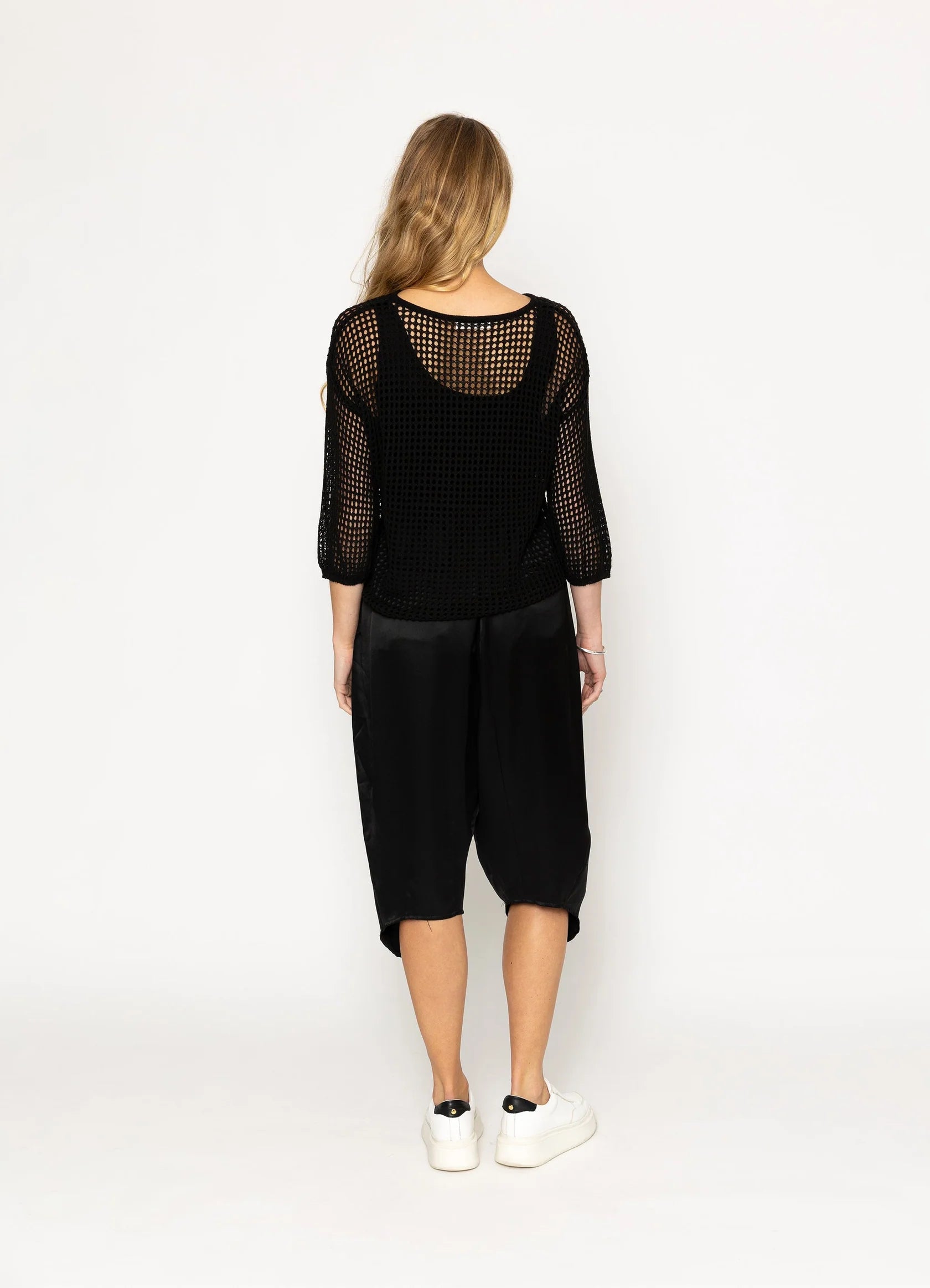 This semi relaxed top with its 3/4 length sleeves add elegant coverage while the open mesh knit adds a touch of allure. Perfect for a night out, this top is the epitome of sophistication and exclusivity.