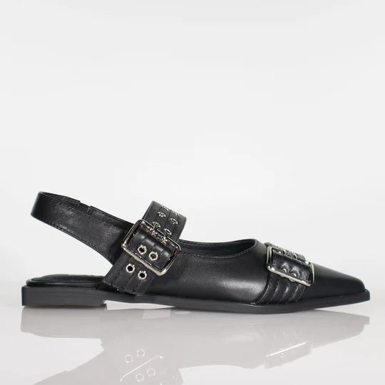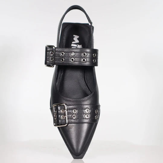 Introducing Mor, a flat grunge-inspired pointed flat with an exaggerated rand, offering a contemporary take on a classic aesthetic. Crafted from premium full leather, these fashion flats feature a standout front toe strap and an adjustable top strap for a customizable fit, accommodating all insteps. With a soft underfoot feel, Mor provides effortless comfort, making it the perfect choice for all your daily duties and evening escapades. Pair them with wide-leg jeans or a midi skirt and tee for a chic daytime ensemble.
