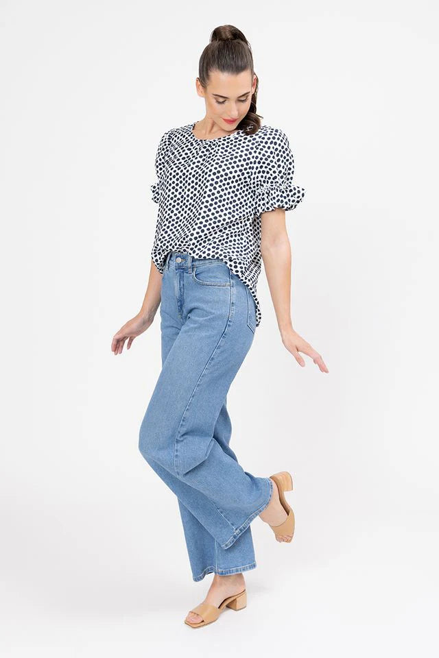 Round neck with a gentle puff sleeve this style looks great with jeans or shorts!